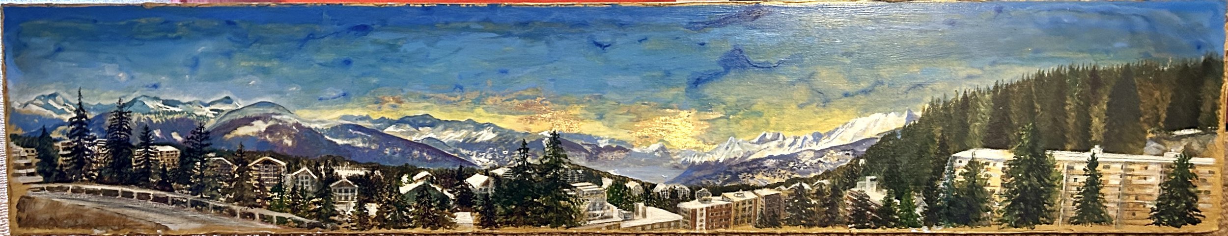 25. Vue de Cry D`er sur le Valais. Envers 150cms x 30 cms. 750chf