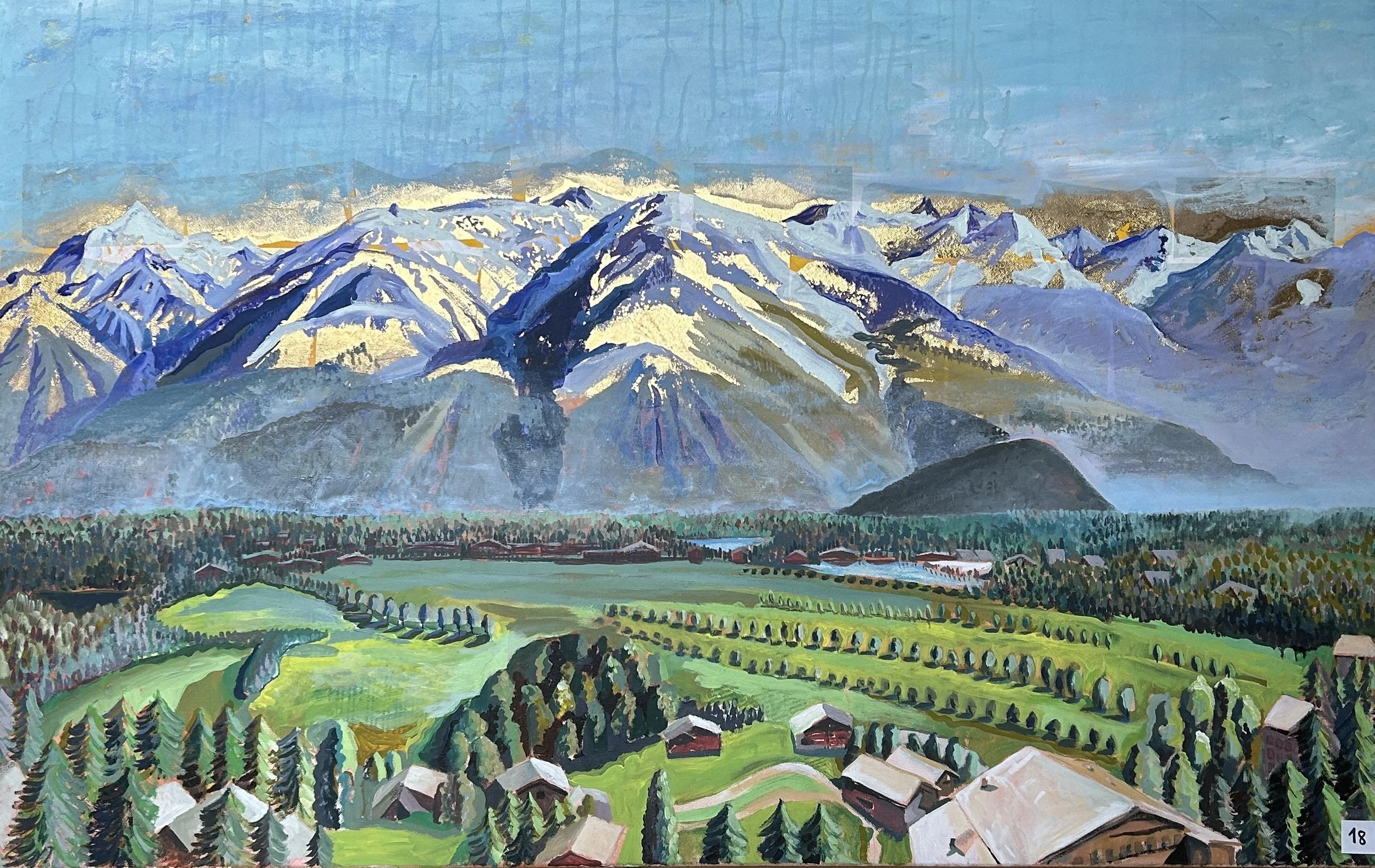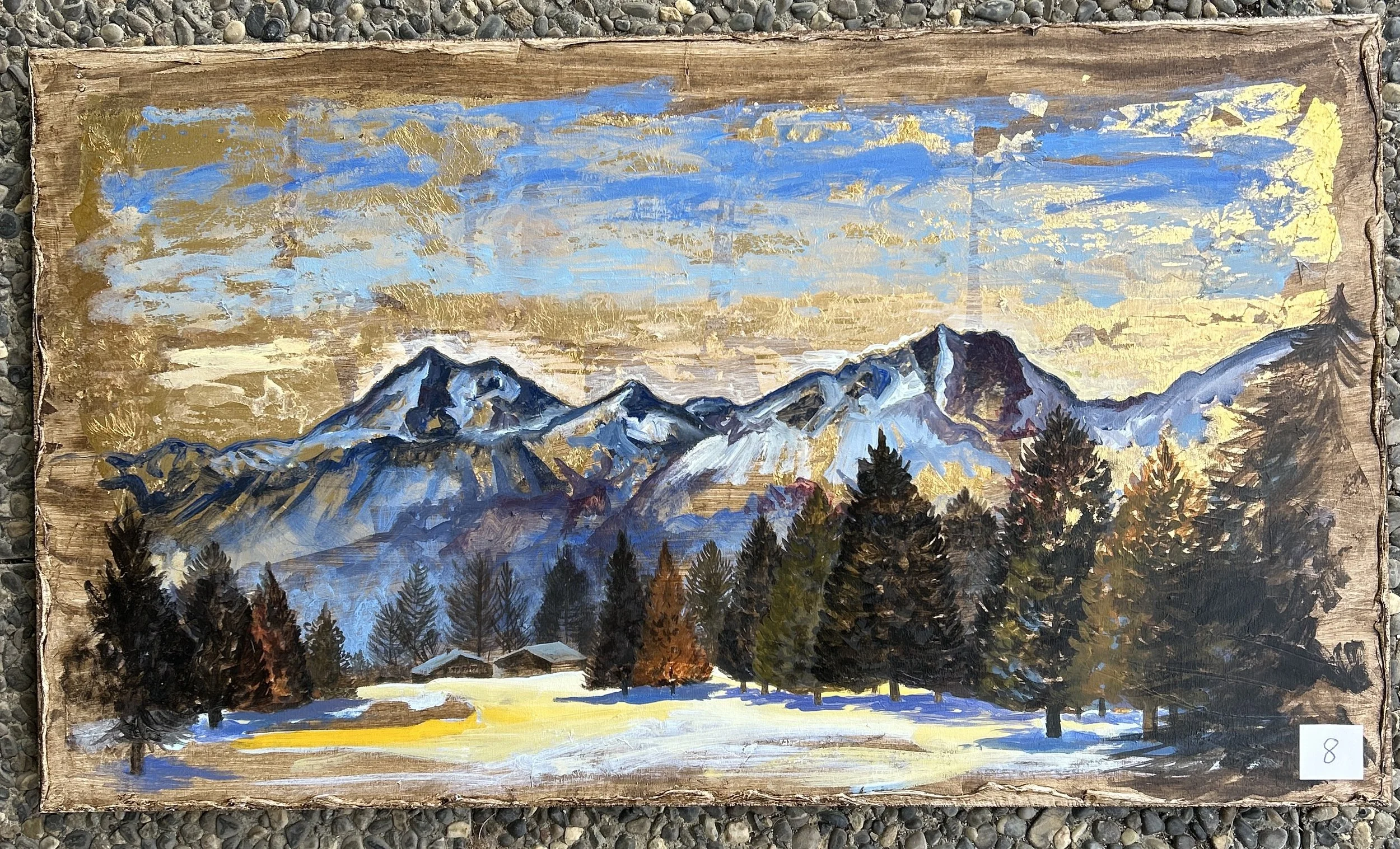 Cette série de paysages enneigés à l’acrylique s’inspire du paysage alpin de Crans-Montana, traduisant ses vastes panoramas et ses variations lumineuses en compositions stratifiées et tactiles. Plutôt que de documenter le territoire, les œuvres interprètent la station comme un espace vécu et une image culturelle, où la grandeur naturelle et la présence humaine coexistent. Présentées à Crans-Montana, ces peintures invitent le regardeur à redécouvrir des perspectives familières et célèbrent l’esprit durable et la richesse visuelle de ce site alpin.